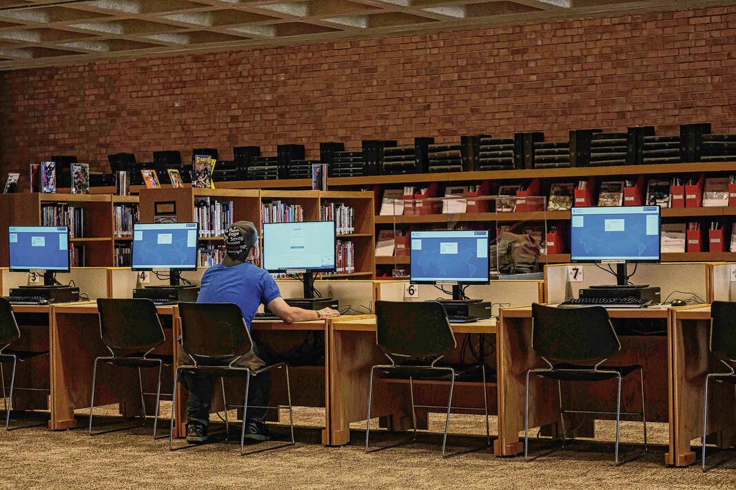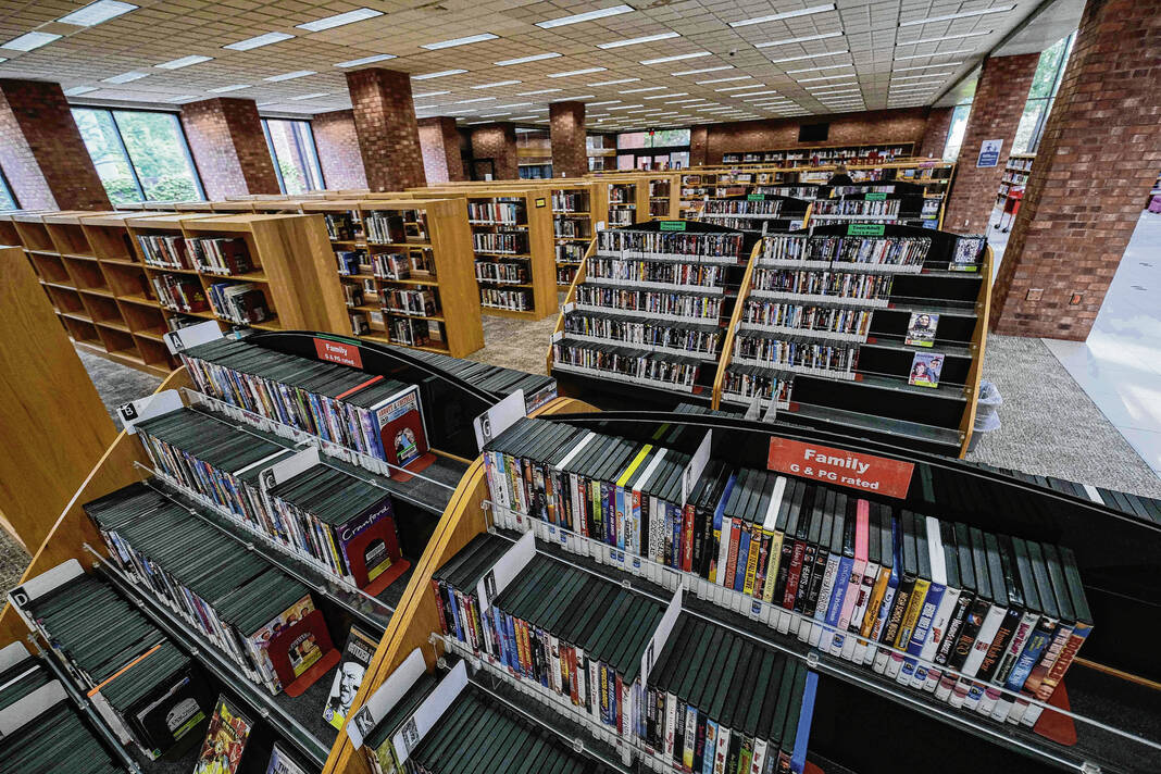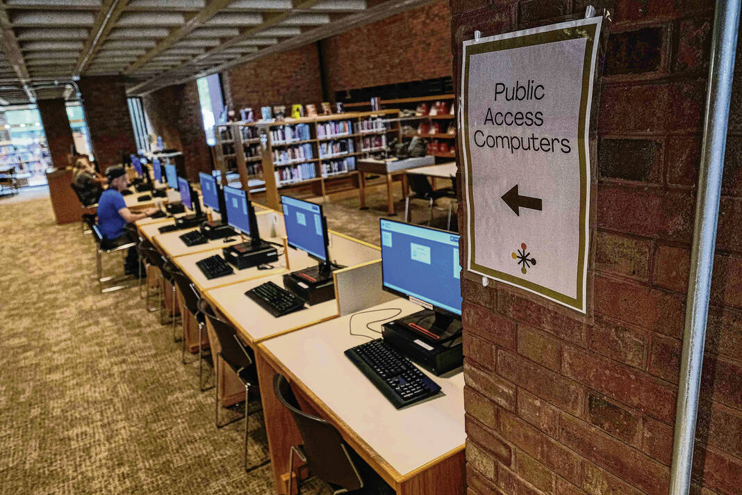Mike Wolanin | The Republic The reference section and computers available to the public are located where movies and music used to be at the Bartholomew County Public Library in Columbus, Ind., Tuesday, Aug. 2, 2023.