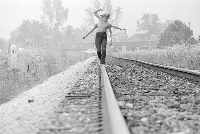 Chester Brummett, 12, son of Pearl Brummett of Jackson Street, appeared to have four arms with which to balance himself while walking along a railroad track in 1973 but in fact was being followed by his friend David Jeffries, 11, son of Mr. and Mrs. Raymond Jeffries, also of Jackson Street.