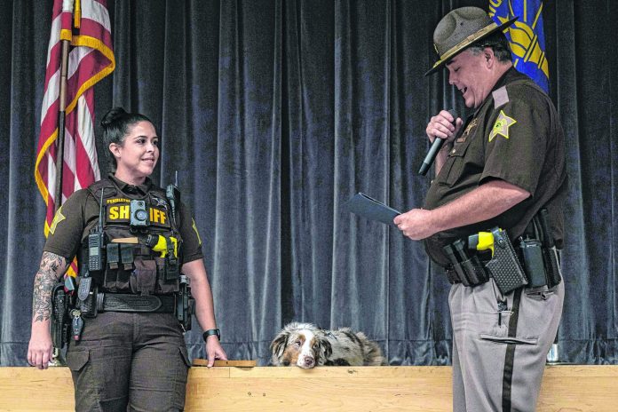COLUMBUS, Ind. — By his own admission, Bartholomew County Sheriff Chris Lane never thought he’d be administering an oath of office to a four-legged, fluffy individual who had to dip her paw in ink to provide a signature.