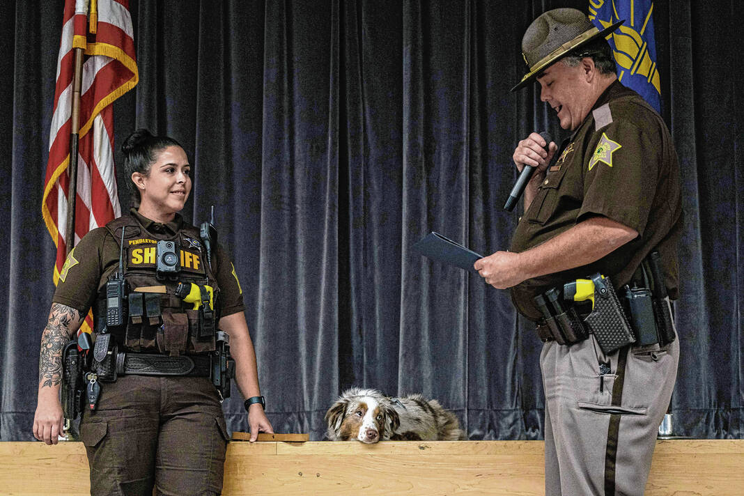 While Pendleton will continue to own the dog, the amendment called for the school corporation and the SRO to share costs in the caring of the Australian shepherd, Bartholomew County Sheriff Chief Deputy Maj. John Martoccia said at the time. He added that food has been donated for the dog’s lifetime.