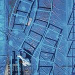 At the Bartholomew County Public Library Plaza before dusk on Tuesday, workers on behalf of Tatiana Bilbao ESTUDIO of Mexico City, Mexico, were painting bright blue finishing touches on a 24-foot-high, whimsical, bookshelf-like backdrop for the Miller Prize installation known as “Designed By the Public.”