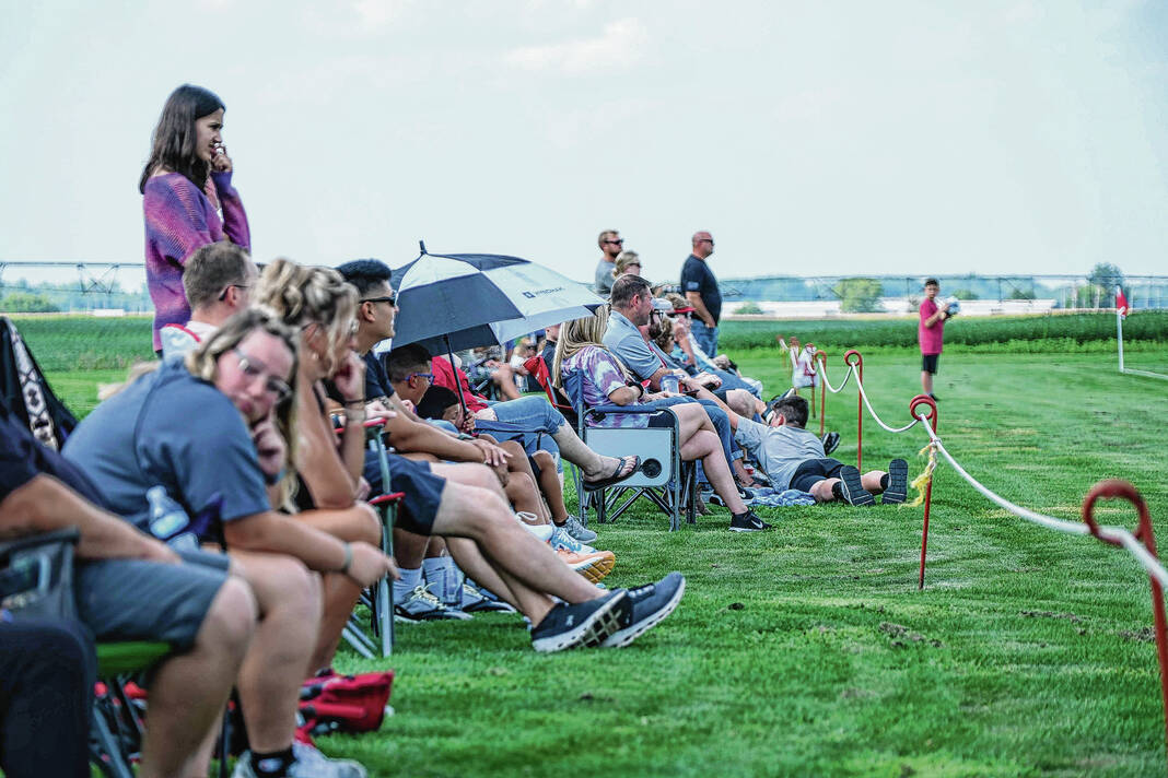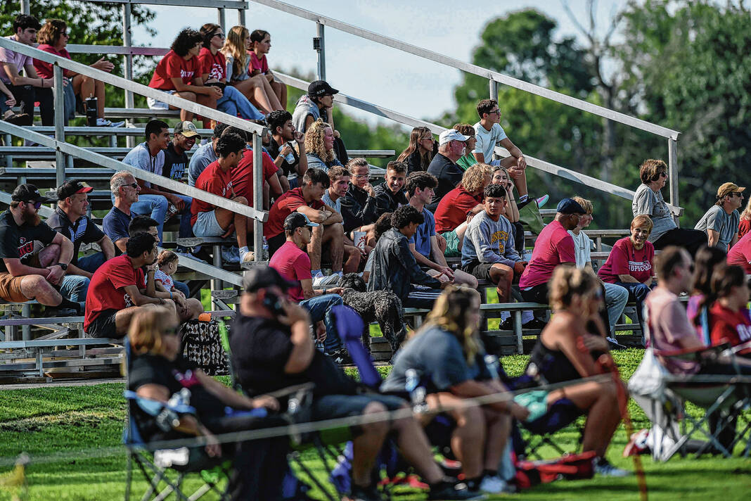 Fans gather to watch a women’s soccer match between IU-Columbus and IU-South Bend at the Richard Wigh Soccer Complex in Columbus, Ind., Friday, Aug. 18, 2023. The game marked the start of the inaugural season for the IU-Columbus women’s soccer program.