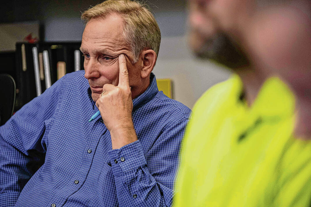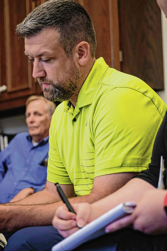 Mike Wolanin | The Republic Republican Joseph “Jay” Foyst listens to the ruling by the Bartholomew County Election Board during a hearing over a challenge to his candidacy for Columbus City Council District 6 in the Bartholomew County Clerk’s Office at the Bartholomew County Courthouse in Columbus, Ind., Friday, Aug. 18, 2023.