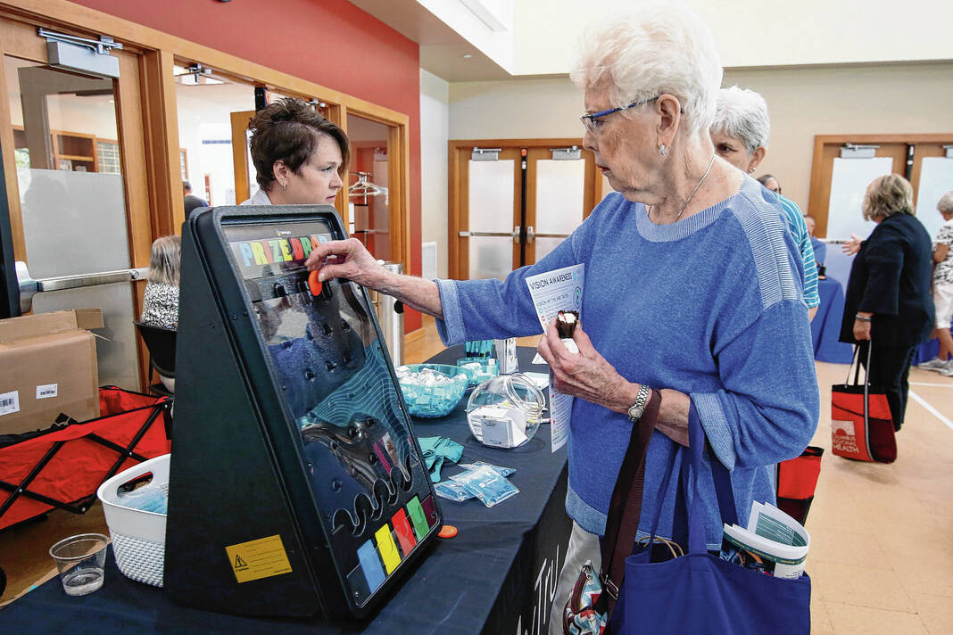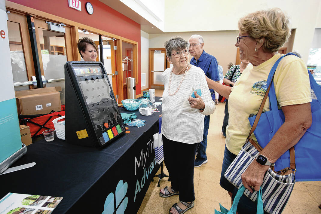 Carla Clark | For The Republic Margaret Payne plays the Prize Drop game at the MyTrue Advantage booth during the Senior Expo at Mill Race Center, Columbus, Ind., Friday, August 18, 2023.