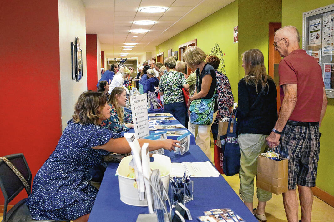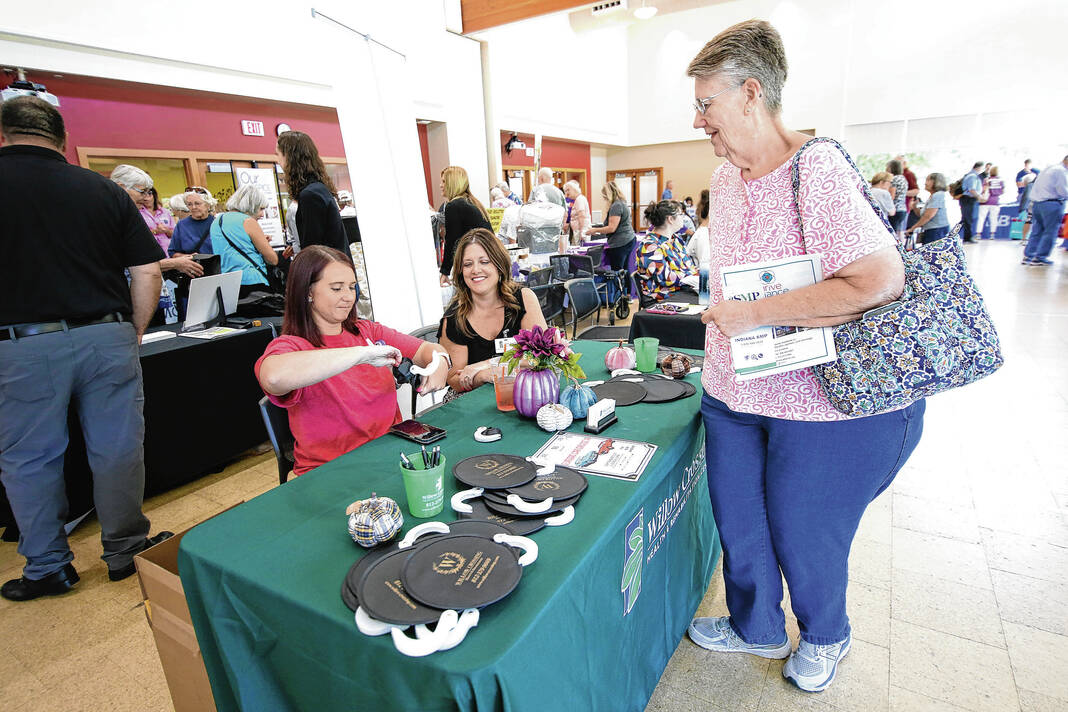 Carla Clark | For The Republic Vendors, at left, answer questions and hand out literature and gifts to people attending the Senior Expo at Mill Race Center, Columbus, Ind., Friday, August 18, 2023.