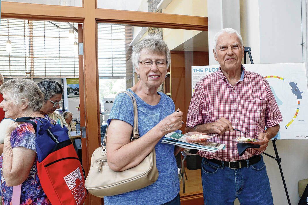 Carla Clark | For The Republic Joanne Kirby, at left and Bob Kirby eat strawberry shortcakes on waffles during the Senior Expo at Mill Race Center, Columbus, Ind., Friday, August 18, 2023.