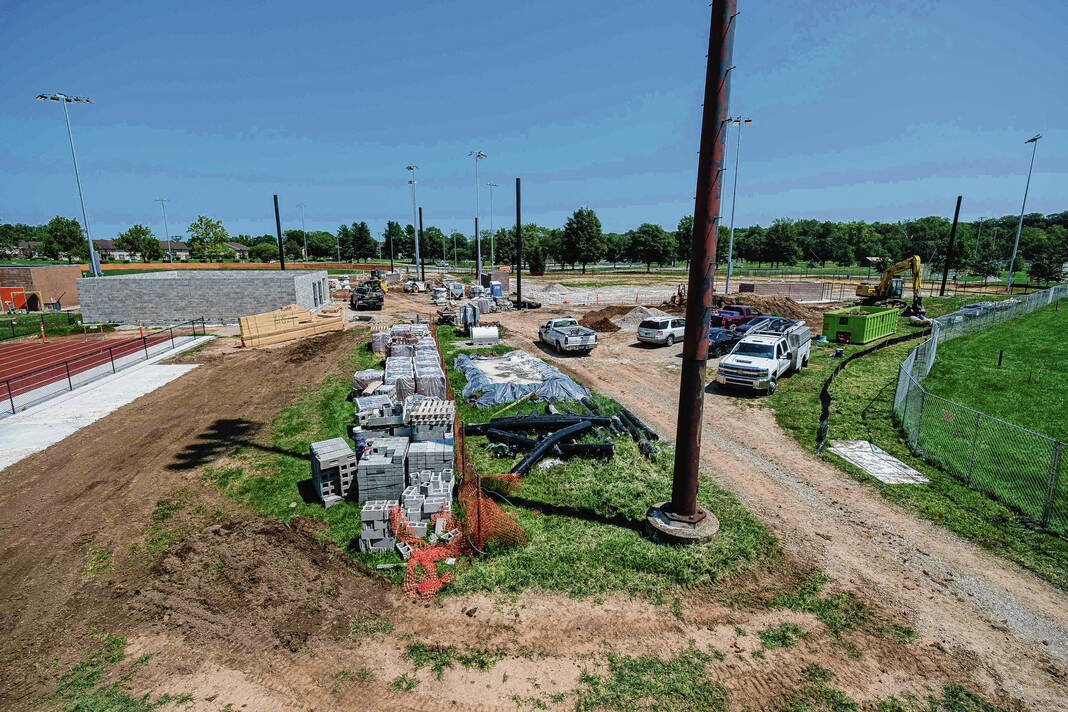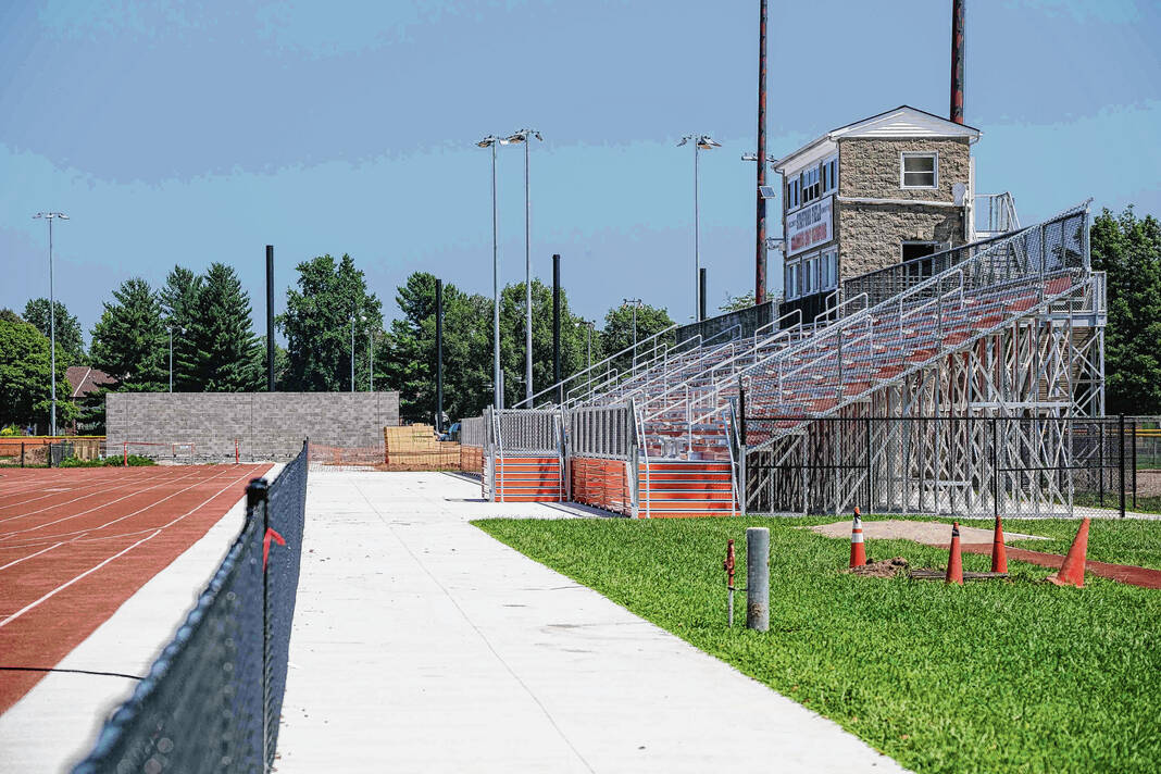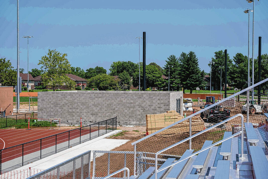 While the football bleachers and press box are complete, the new bathroom and concession facilities north of the visiting football bleachers will not be finished this season. There will be a restroom trailer and a concession trailer that will be similar to the previous East baseball concession on the south end of the track by the visiting ticket gate. The goal for those facilities and the baseball and softball field renovations is to be completed by the end of the calendar year.