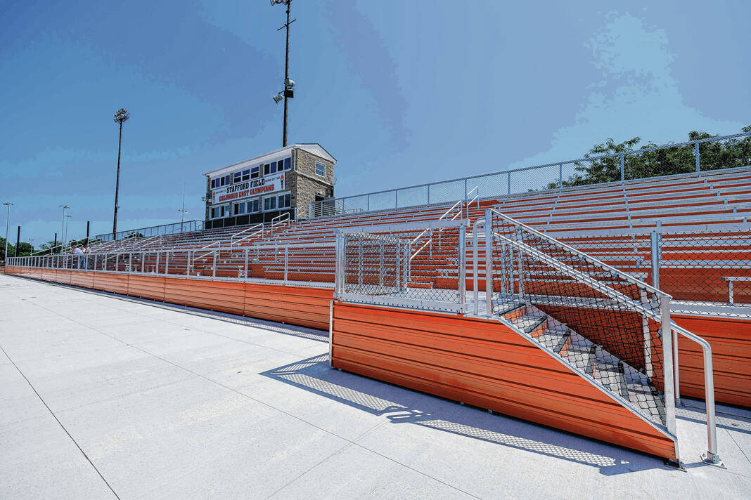A newly renovated press box and brand new bleachers sit on the visiting end of Stafford Field. It is only a fraction of a multi-million dollar project by the Bartholomew Consolidated School Corp. to make upgrades to those facilities, as well as a new softball field that will be fully turf with lights and a new baseball diamond with infield turf and lights.