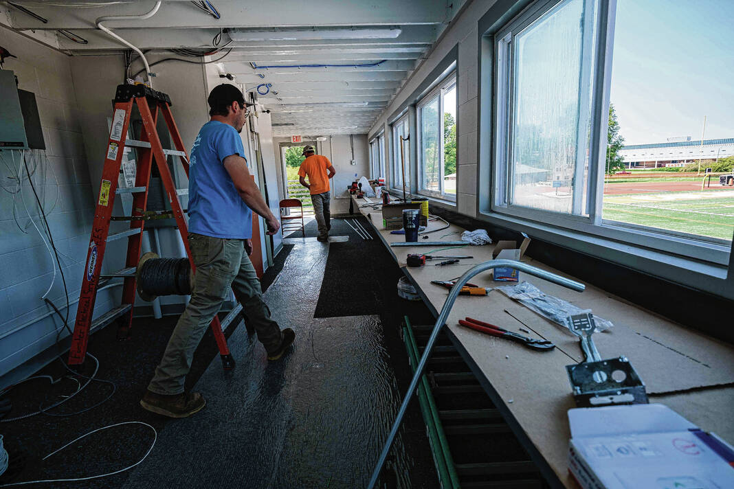 The press box now is fully carpeted and has Internet access, along with heating and air conditioning. There will three separate rooms upstairs — one for each team’s coaching staff and the room in the middle will be for the film crew of each team.
