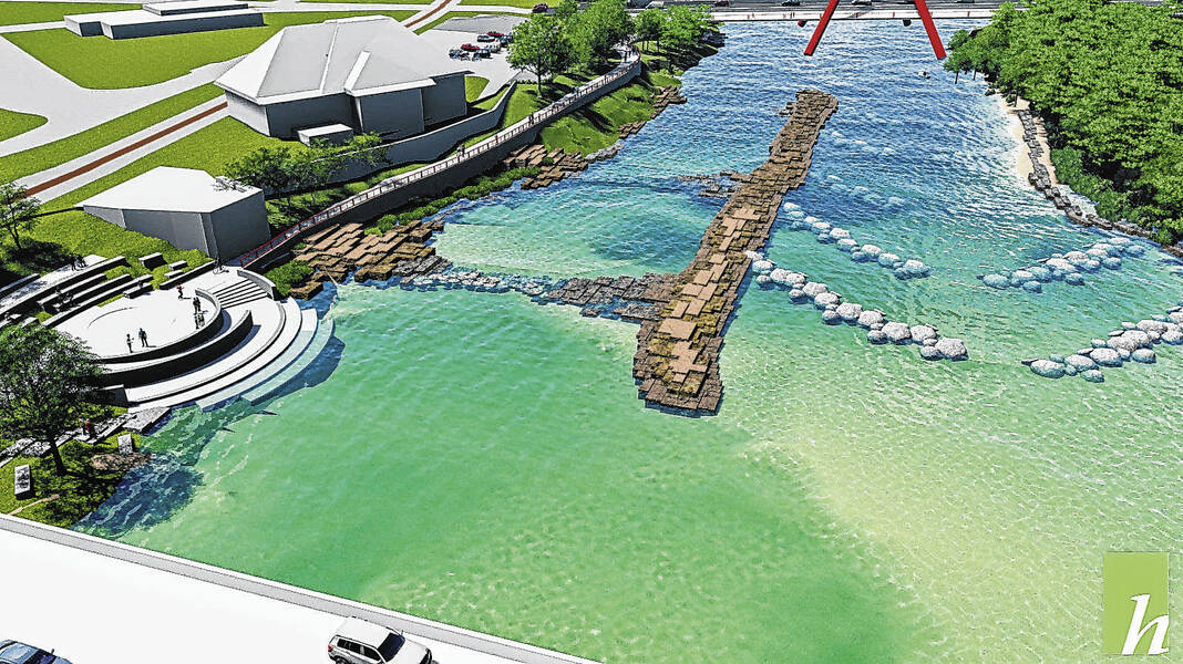 Republic file photo The new design for the Columbus riverfront incorporates a fish passage channel and a rock arch ramp structure using natural materials, which reduces the amount of grout required in the structure, accommodates boat passage and maintains the river’s water level.