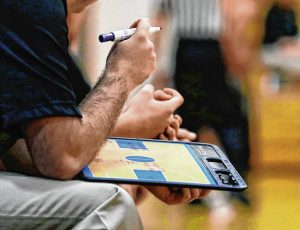 Former Columbus North assistant coach Peyton Russell draws out plays during a game against Andrean in the Noblesville Holiday Tournament Dec. 27, 2018, at Noblesville High School.