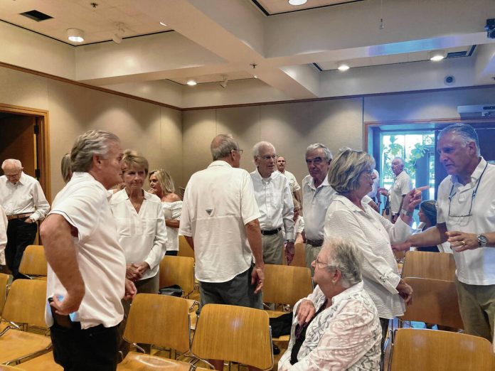 Jana Wiersema | The Republic Grandview Lake residents who attended the county Board of Zoning Appeals meeting wore white to protest a variance proposal for Henry Chateau.