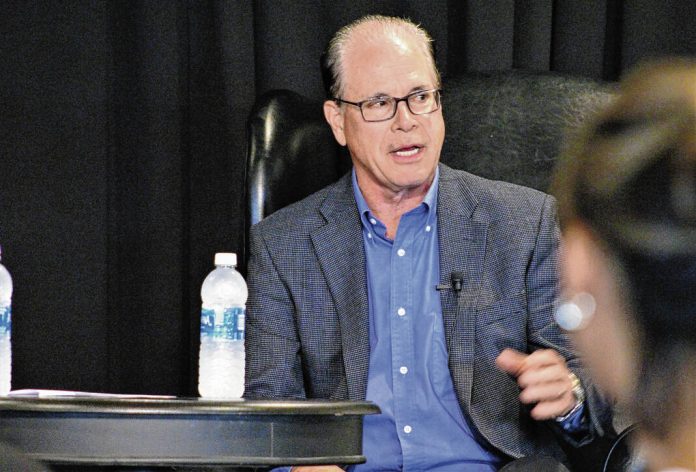 U.S. Sen. Mike Braun speaks during the Aspire Legislation Matters luncheon discussion held at Valle Vista Golf Club and Conference Center in Greenwood on Tuesday.