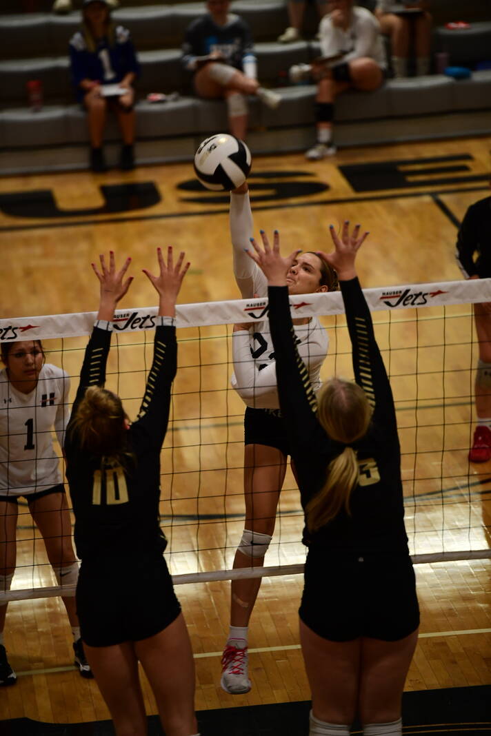 Also for Hauser, Kayden Miller totaled 21 assists, Paige McDaniel had three blocks, Norah Berkenstock pounded seven kills, Gracie Blair notched 10 digs and Mattie Foster added four digs.