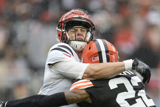 Cincinnati’s Joe Burrow celebrated his new contract by going 14 for 31 for 82 yards in a loss to Cleveland, while getting sacked twice for 15 yards. The 67 net yards passing were the fewest in an opener in the past 30 years — a mark that stook only a few hours.