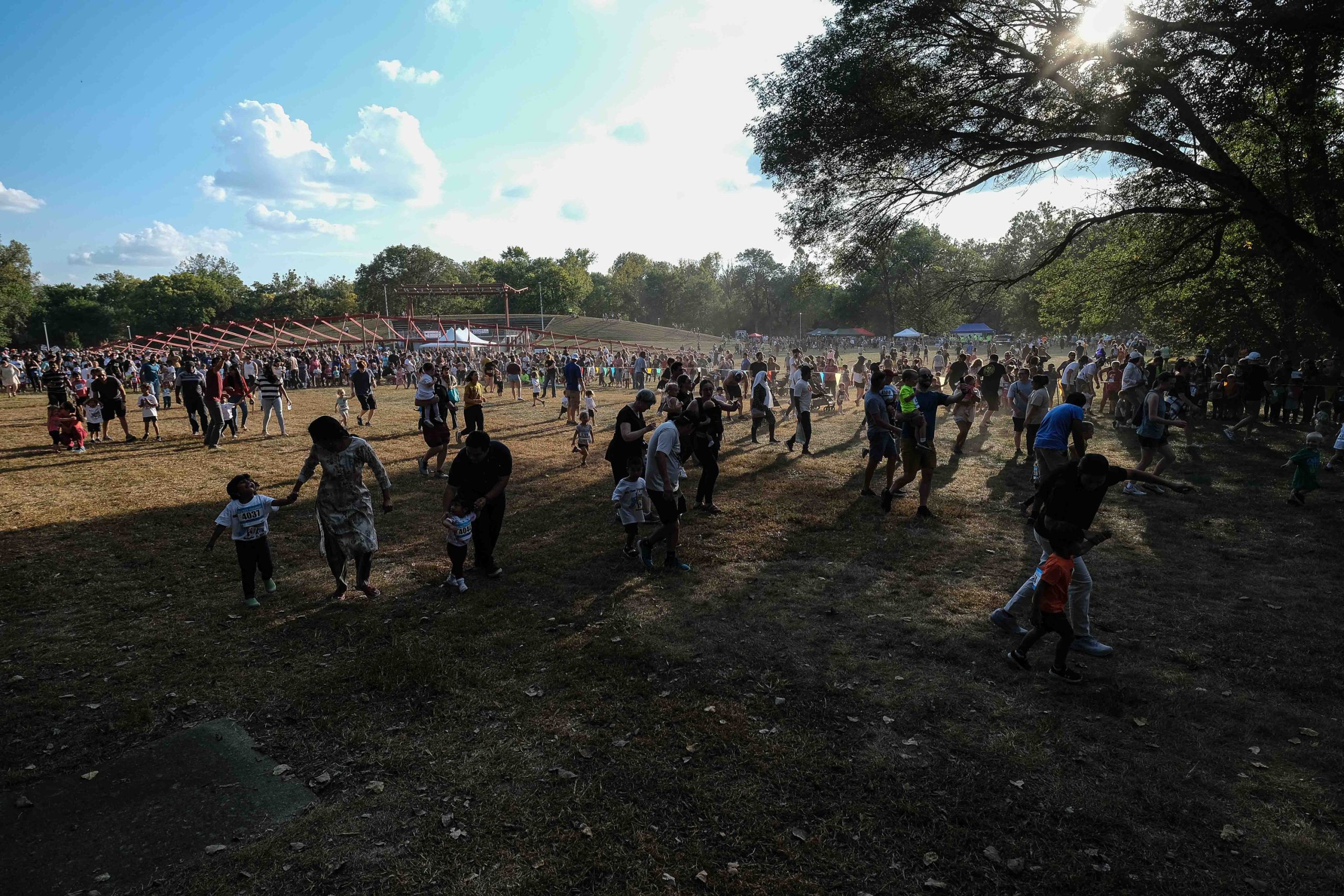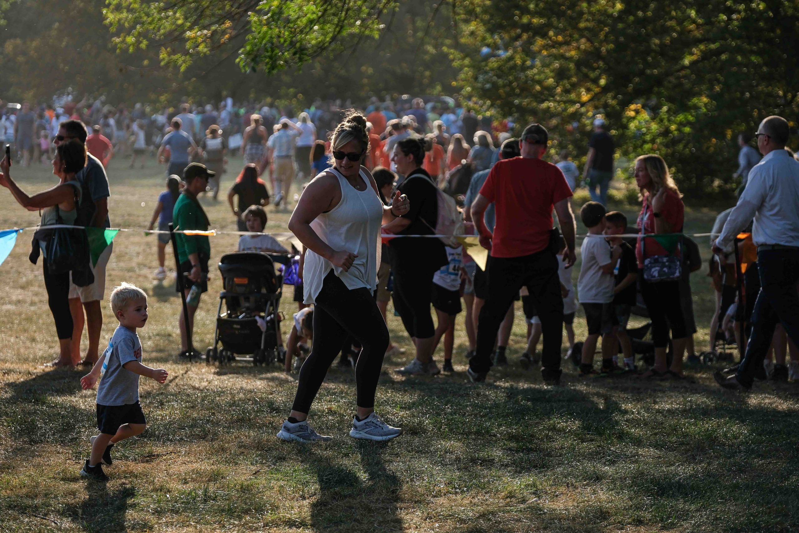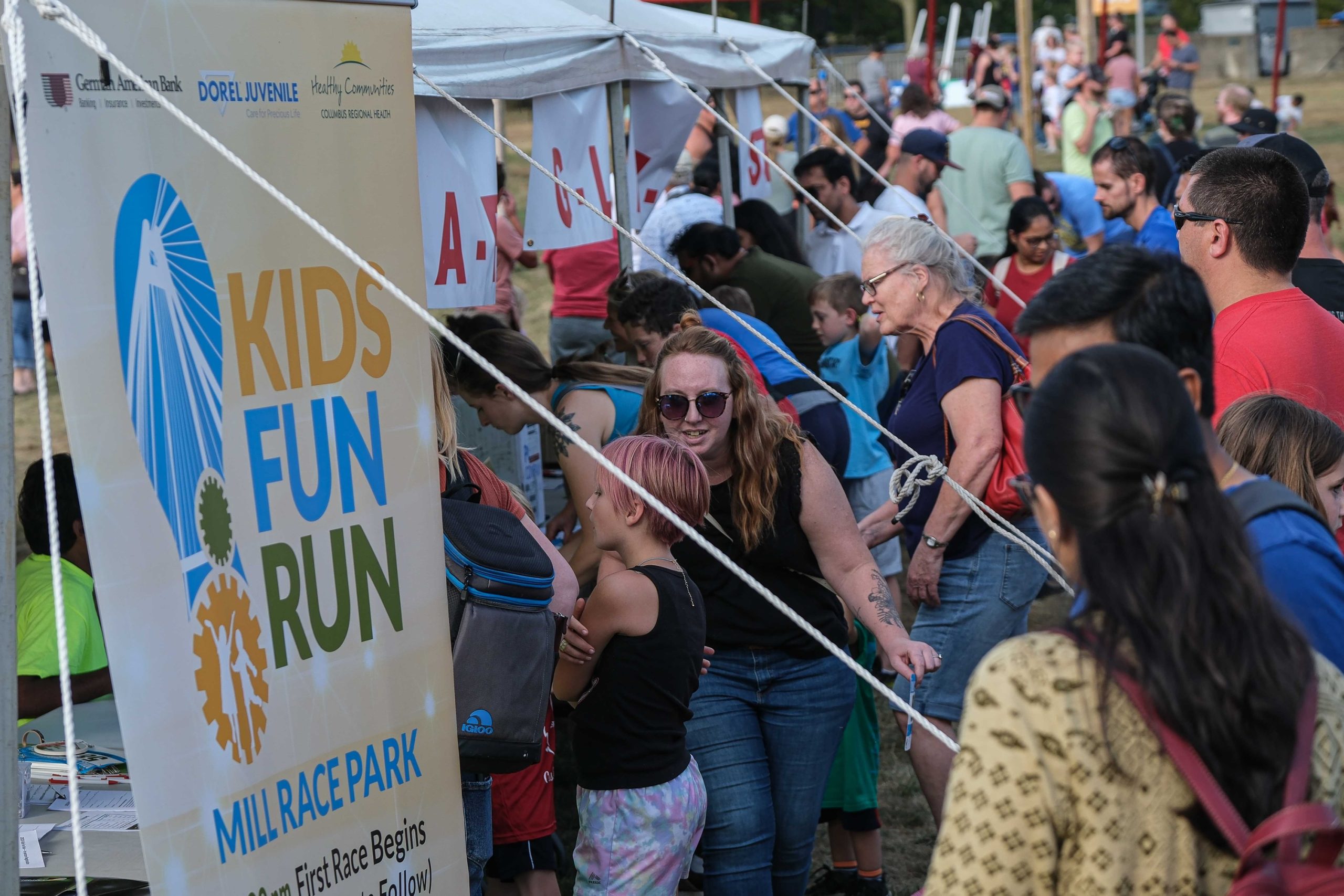 People gather for the Kids Fun Run at Mill Race Park in Columbus, Ind., Friday, Sept. 22, 2023.