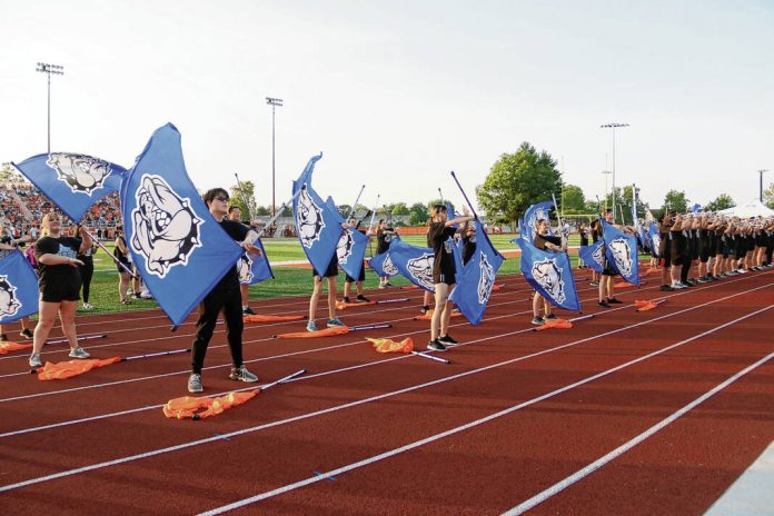 The Sound and Spirit of Columbus preforms the Columbus North fight song before the Bull Dogs played Columbus East at Columbus East, Friday, Aug. 25, 2023. Paige Grider for The Republic