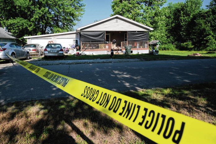 Mike Wolanin | The Republic Bartholomew County Sheriff deputies are investigating a shooting at this home in the 300 block of Elm Street in Hope where a 36-year-old man and his 3-year-old son were shot allegedly by a relative during a family dispute.