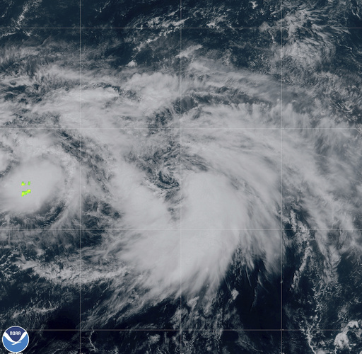 Meanwhile, Tropical Storm Philippe was moving slowly across the Atlantic at 2 mph (4 kph). Maximum sustained winds were about 50 mph (85 kph), with little change in strength expected over the next several days.