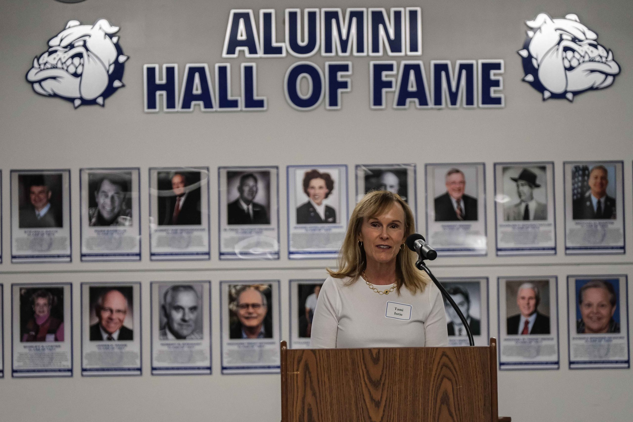 The Bull Dog Alumni Association Hall of Fame honored the 2023 Bull Dog Alumni Hall of Fame inductees Harold Force and Dr. Tami Stone Iorio prior to Columbus North’s homecoming football game Friday night.