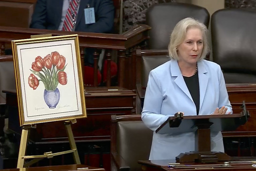 Sen. Kirsten Gillibrand, D-N.Y., brought a drawing Feinstein had given her and wore red lipstick in her honor. Murray told a story about admiring one of Feinstein’s purses, and then receiving one in the mail from the California senator a few days later. Sen. Maggie Hassan, D-N.H., said she was wearing shoes she said Feinstein had once admired.