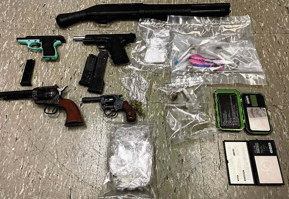 Officers determined that Wilson had an active parole warrant for his arrest and additional suspected fentanyl was located in his clothing. The Bartholomew Joint Narcotics Enforcement Team (JNET) was contacted and a search warrant for the home was later obtained. During the investigation, a significant amount of suspected methamphetamine, along with multiple firearms, digital scales with meth residue, drug paraphernalia and marijuana were located pursuant to the search warrant.