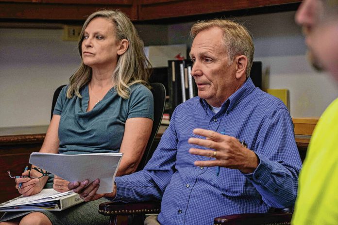 Mike Wolanin | The Republic Bartholomew County Democratic Party Chairman Ross Thomas addresses members of the Bartholomew Election Board during a hearing about his challenge of Republican Joseph Jay Foyst’s candidacy for Columbus City Council District 6 in the Bartholomew County Clerk’s Office at the Bartholomew County Courthouse in Columbus, Ind., Friday, Aug. 18, 2023. Thomas’s challenge asserted that the Bartholomew County Republican Party had not filed the paperwork for Foyst’s candidacy on time. The board upheld the challenge and Foyst will be removed from the ballot.