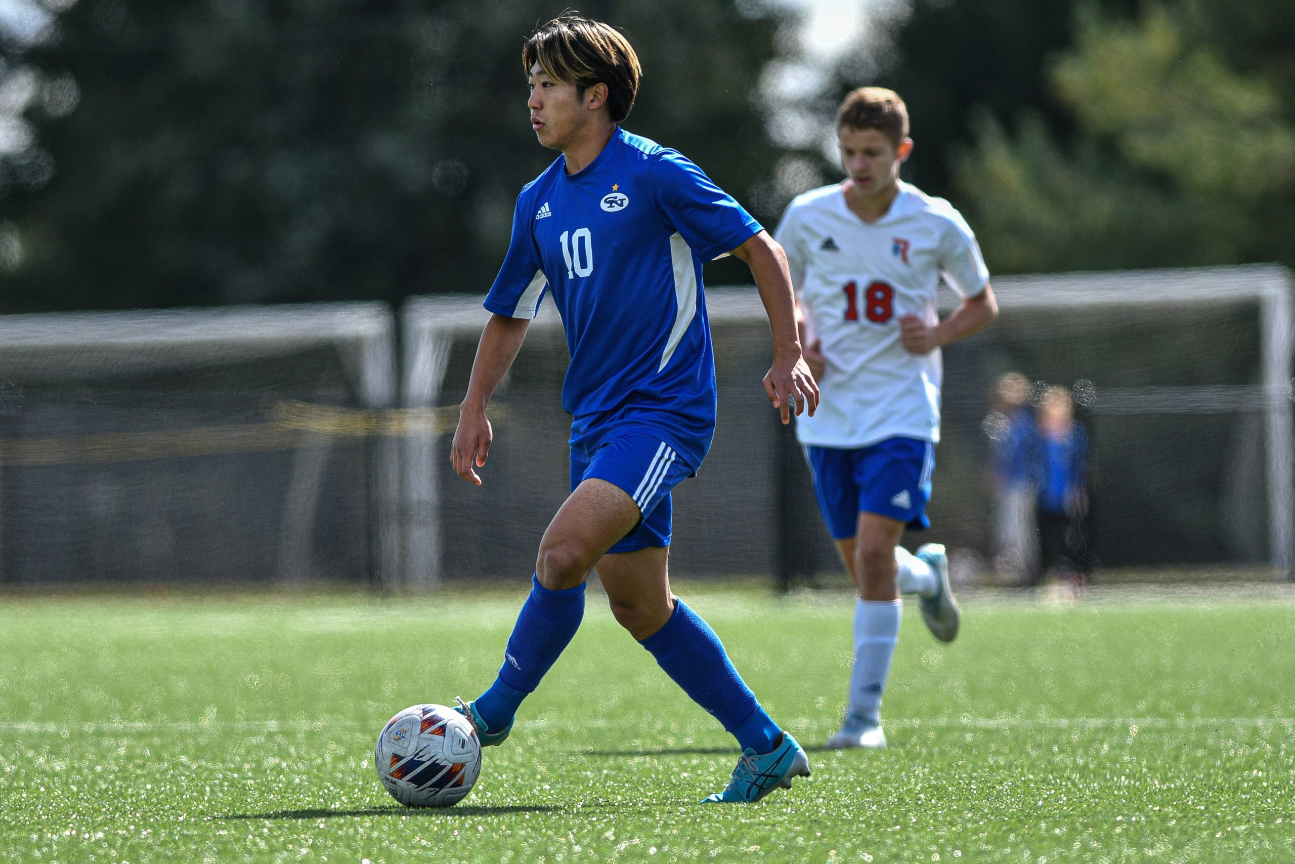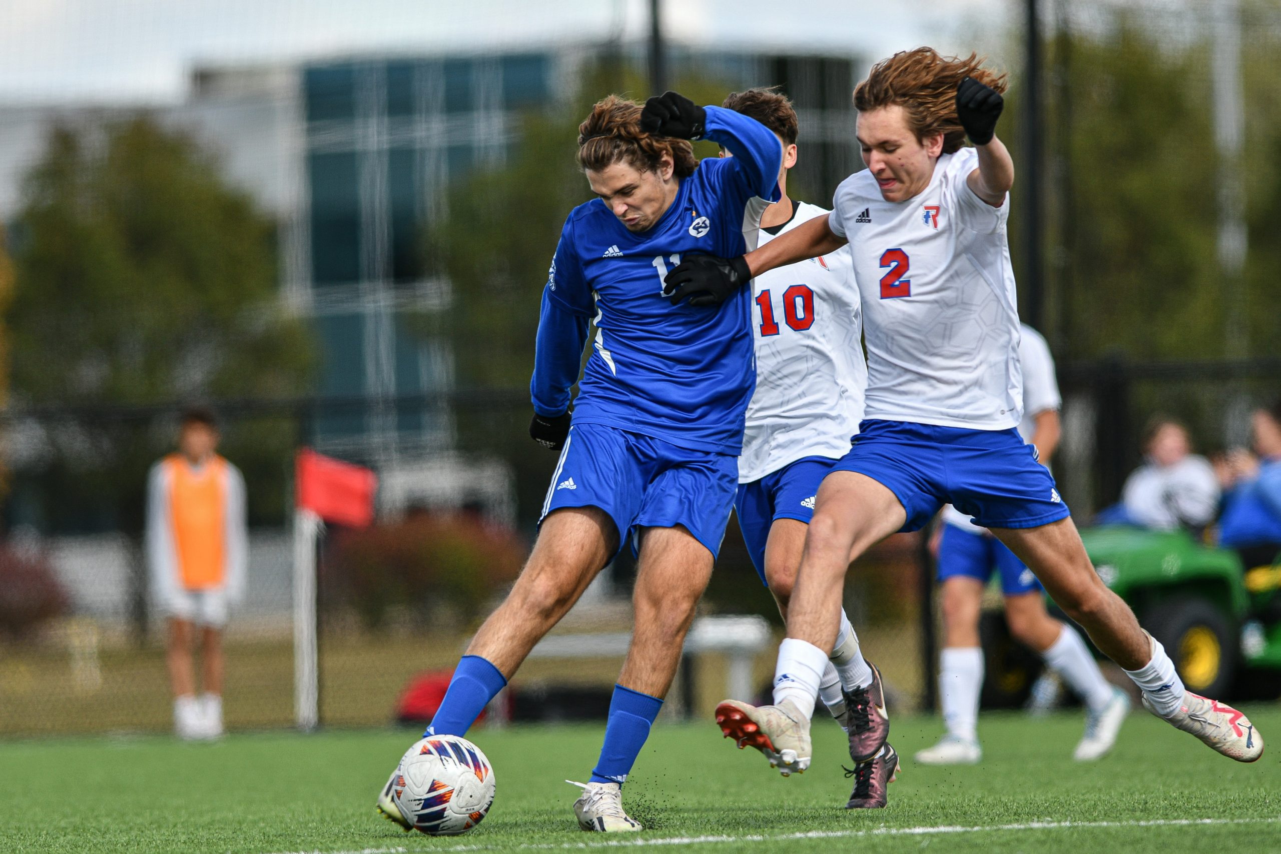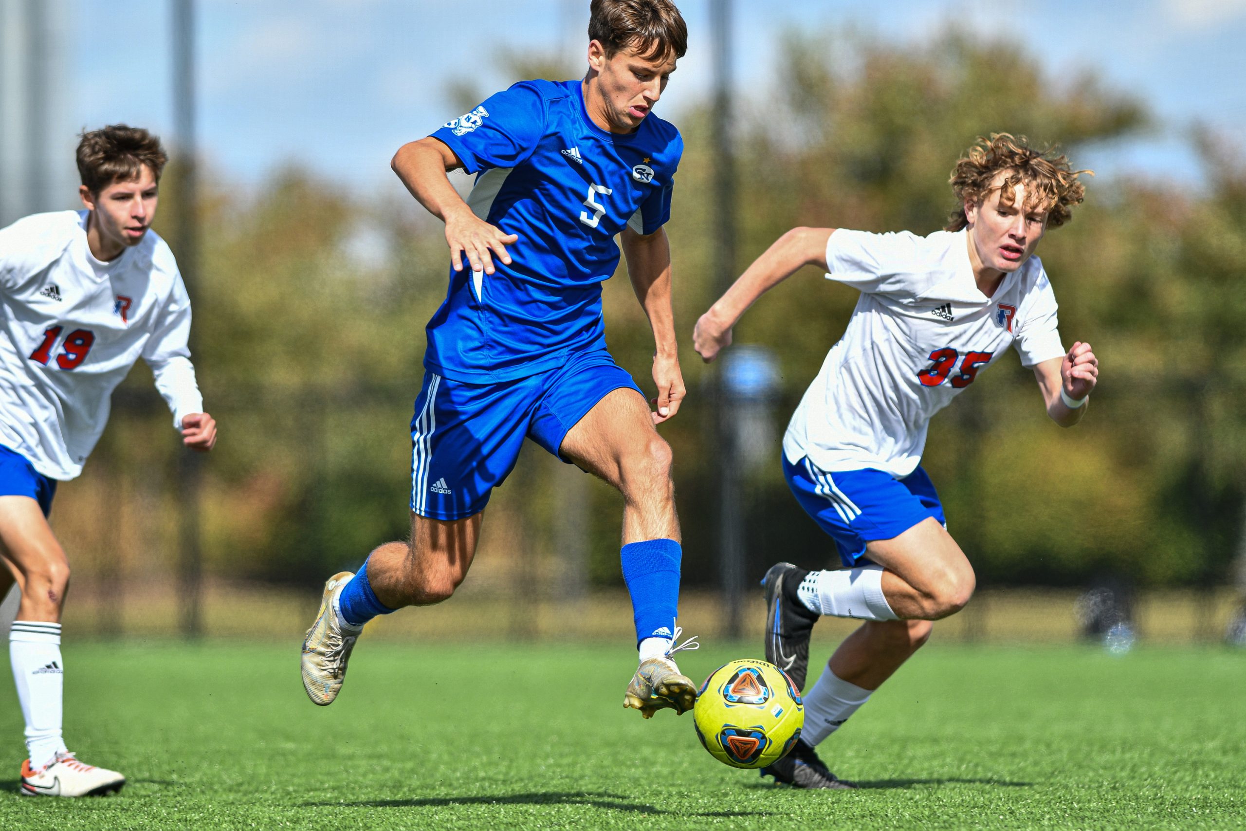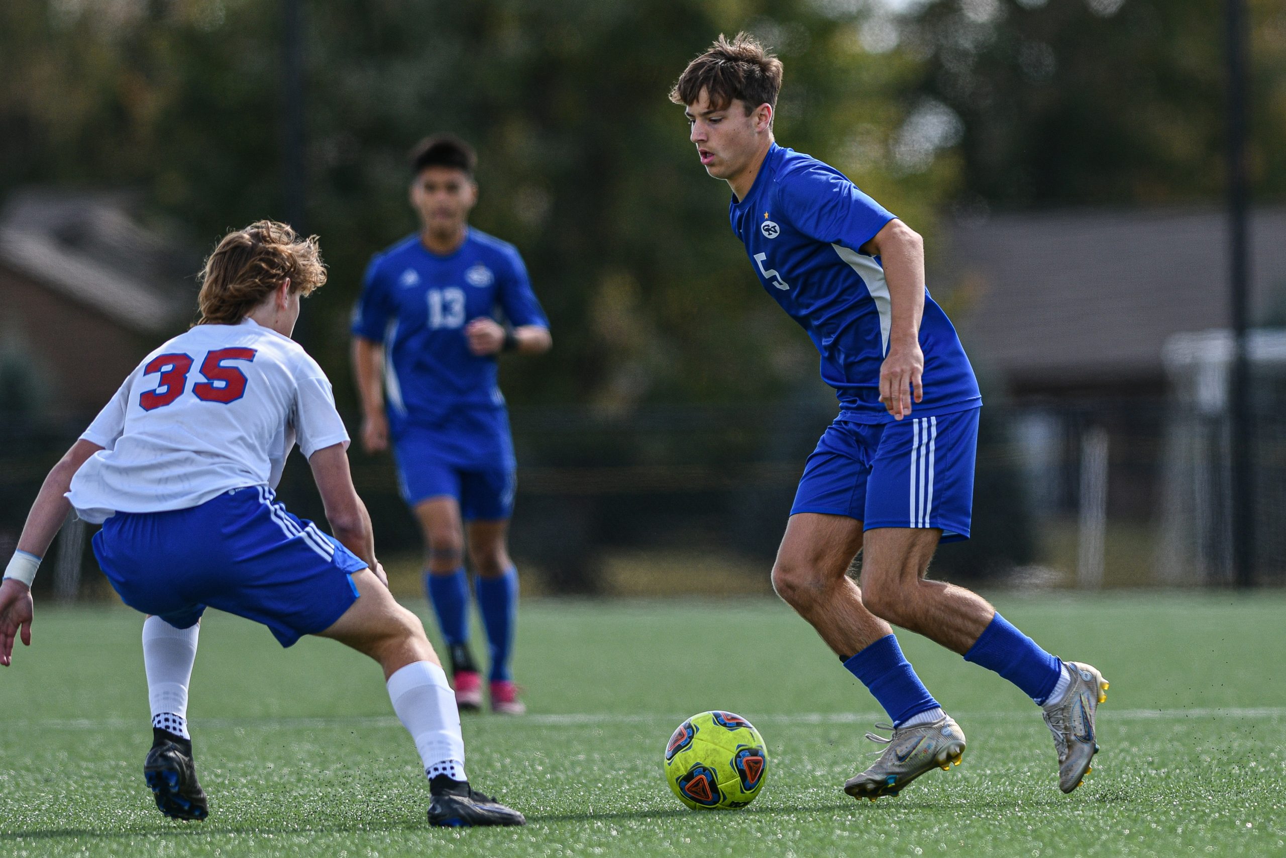 Columbus North’s Aidan Whitley dribbles the ball during a sectional final soccer match between Columbus North and Roncalli at the BCSC Soccer Complex in Columbus, Ind., Saturday, Oct. 7, 2023. North defeated Roncalli 4-2 to win the sectional title.