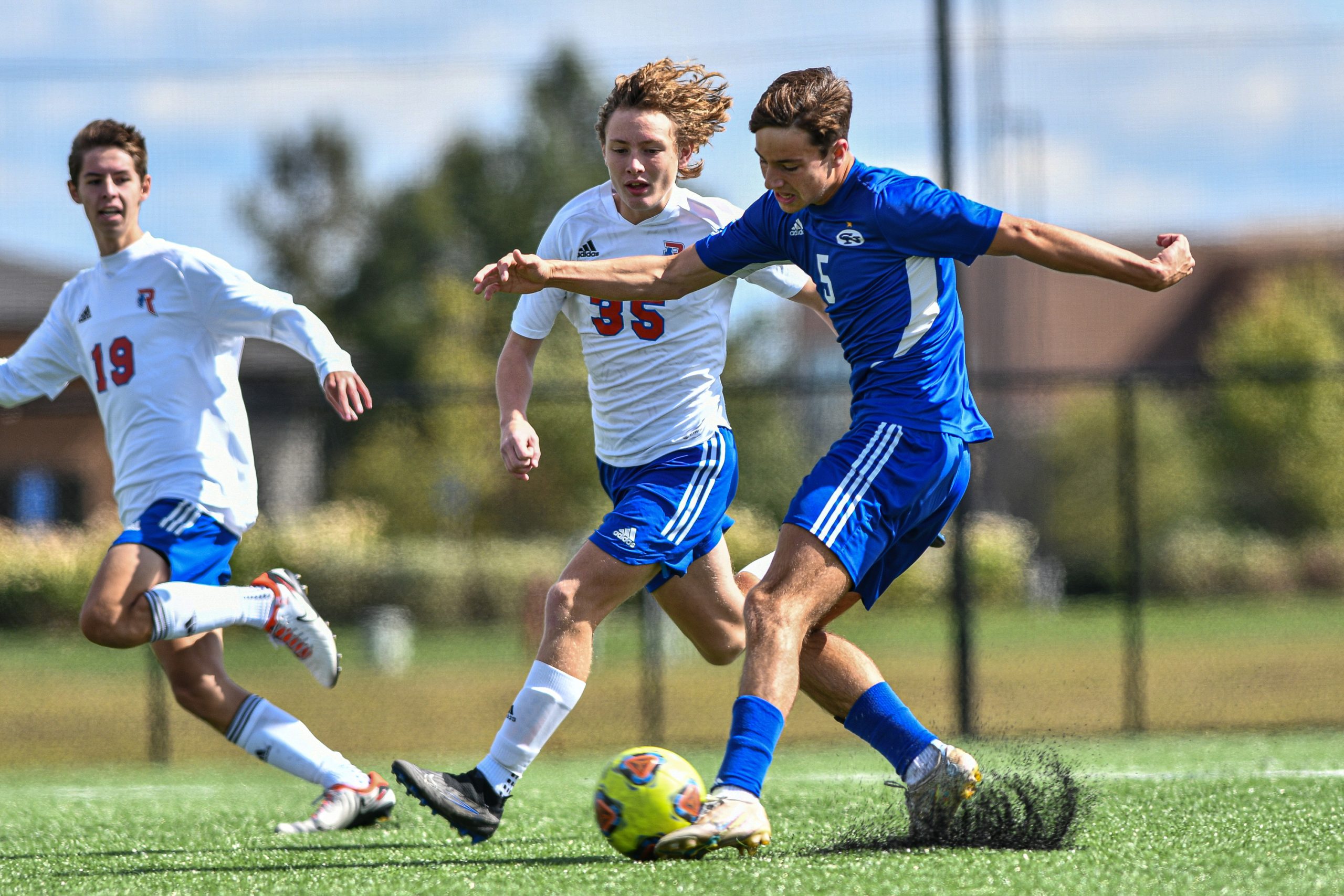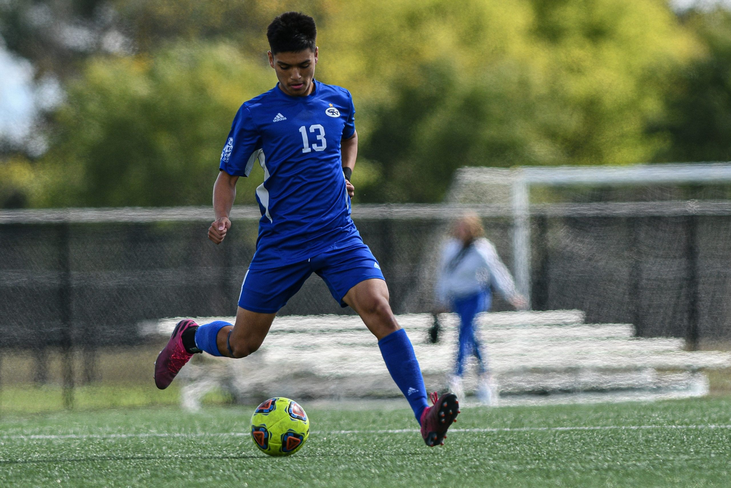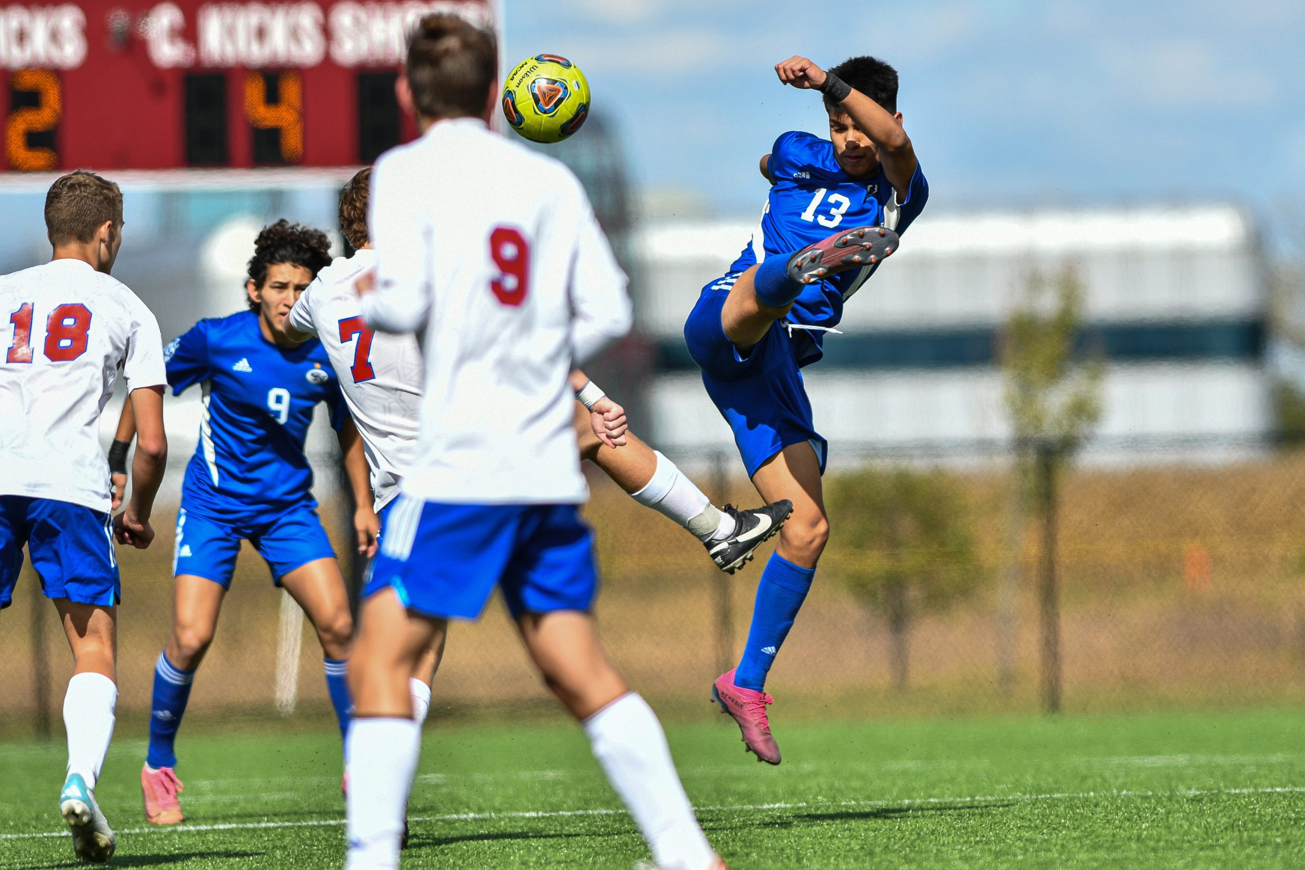 Columbus North’s Adian Espejel kicks the ball during a sectional final soccer match between Columbus North and Roncalli at the BCSC Soccer Complex in Columbus, Ind., Saturday, Oct. 7, 2023. North defeated Roncalli 4-2 to win the sectional title.