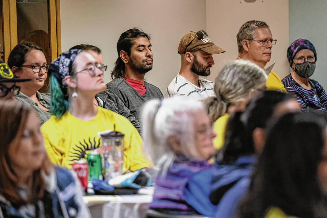 Mike Wolanin | The Republic City Council district candidates Kent Anderson, from left, Jerone Wood, Eric Riddle, Keegan Hill, Nick Slabaugh and Elaine Hilber take part in the Put People First Town Hall by the local chapter of Hoosier Action at St. Paul’s Episcopal Church in Columbus, Ind., Monday, Oct. 9, 2023. Members of the public listened to and engaged with candidates for city council and mayor about issues facing people living in Columbus.