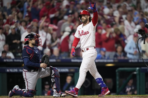 PHILADELPHIA (AP) — When gossip spread among the Phillies that Bryce Harper — of all the superstars to poke — had been laughed at inside the Braves clubhouse, his teammates dared the slugger to deliver.