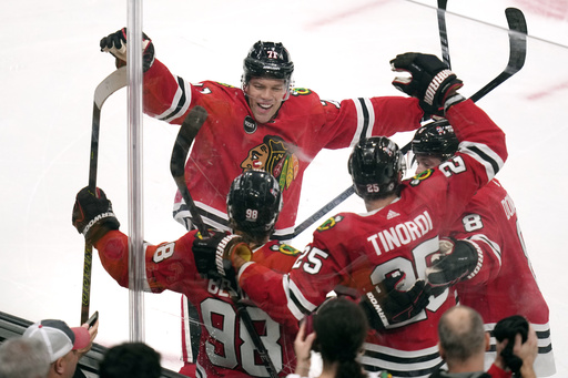 BOSTON (AP) — Chicago Blackhawks rookie and No. 1 overall draft choice Connor Bedard scored his first NHL goal in the first period of Wednesday night’s game against the Boston Bruins.