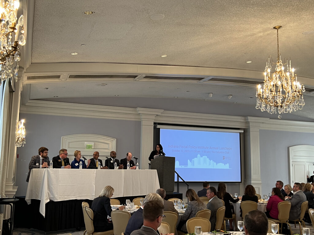 The discussion took place during the Indiana Fiscal Policy Institute’s annual luncheon in downtown Indianapolis.