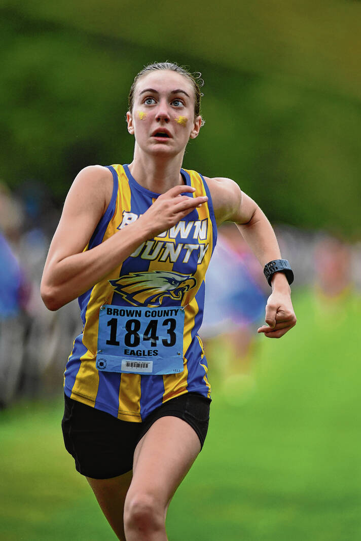 Brown County had three runners competing, and two advanced as individuals. Sadie Hiatt finished 27th in 22:26.2, and Izzy Miller was 36th in 22:58.8. Della Hitchcock missed by one spot with a 42nd-place finish in 23:33.2.