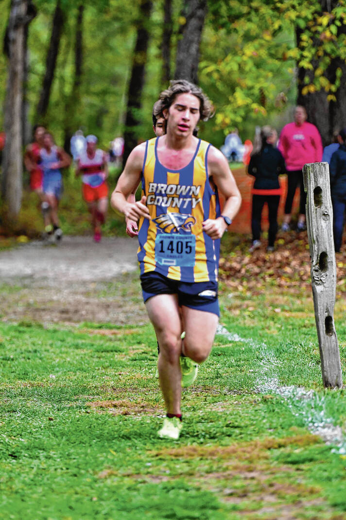 Brown County finished eighth with 203 points but advanced its entire top five, with Charlie Webb taking 34th (18:16.3), Eli Wrightsman 40th (18:38.7), Kai Koester 41st (18:40.7), Corbin Brahaum 43rd (19:02.6) and Aden Skaggs 45th (19:09.0). Also for the Eagles, Josh Redmon was 65th (20:22.0) and Carter Condon 75th (21:26.9).