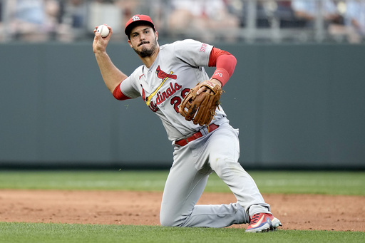 The St. Louis Cardinals third baseman was not among the three finalists announced Wednesday. Pittsburgh’s Ke’Bryan Hayes, Colorado’s Ryan McMahon and Atlanta’s Austin Riley are contending for the award, which will be announced Nov. 5.