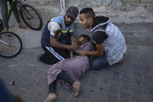 KHAN YOUNIS, Gaza Strip — A barrage of Israeli airstrikes on Gaza’s southern city of Khan Younis near a U.N. school struck several residential buildings, prompting a frantic rescue effort as medics rushed several dead bodies and dozens of wounded Palestinians to the hospital.