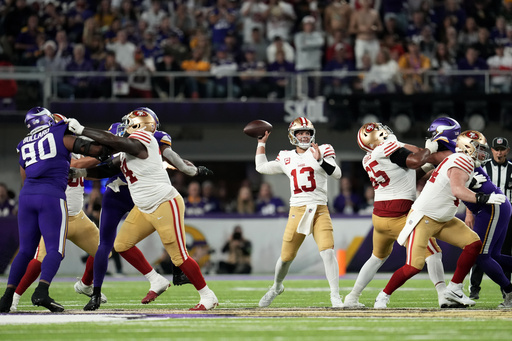 NOTES: LT Trent Williams (ankle) didn’t practice but could be back on the field Thursday after missing last week’s game. … LB Dre Greenlaw got a rest day and WR Deebo Samuel (shoulder) remains sidelined. … Shanahan said defensive coordinator Steve Wilks lost track of time when he called for a blitz with 16 seconds left in the first half. The Vikings scored a 60-yard TD on the play. “He knows he messed up on that call,” Shanahan said.