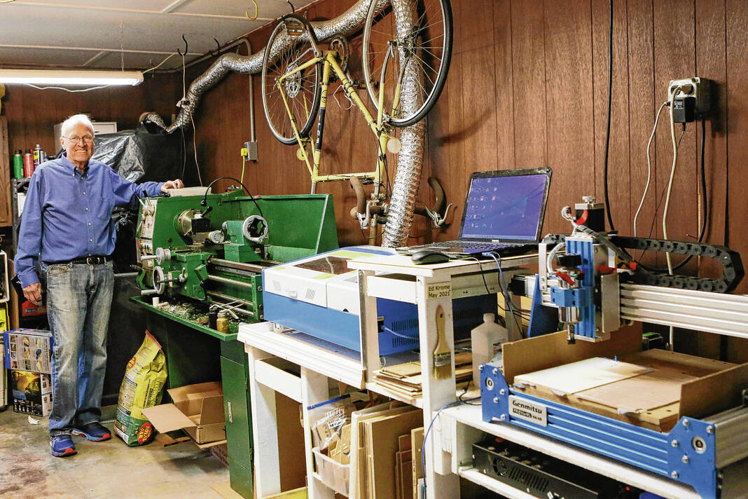 Their home features two garages, one of which he built, and which now serves as his shop where he stores an engraver, a CNC milling machine, a lathe and other equipment.