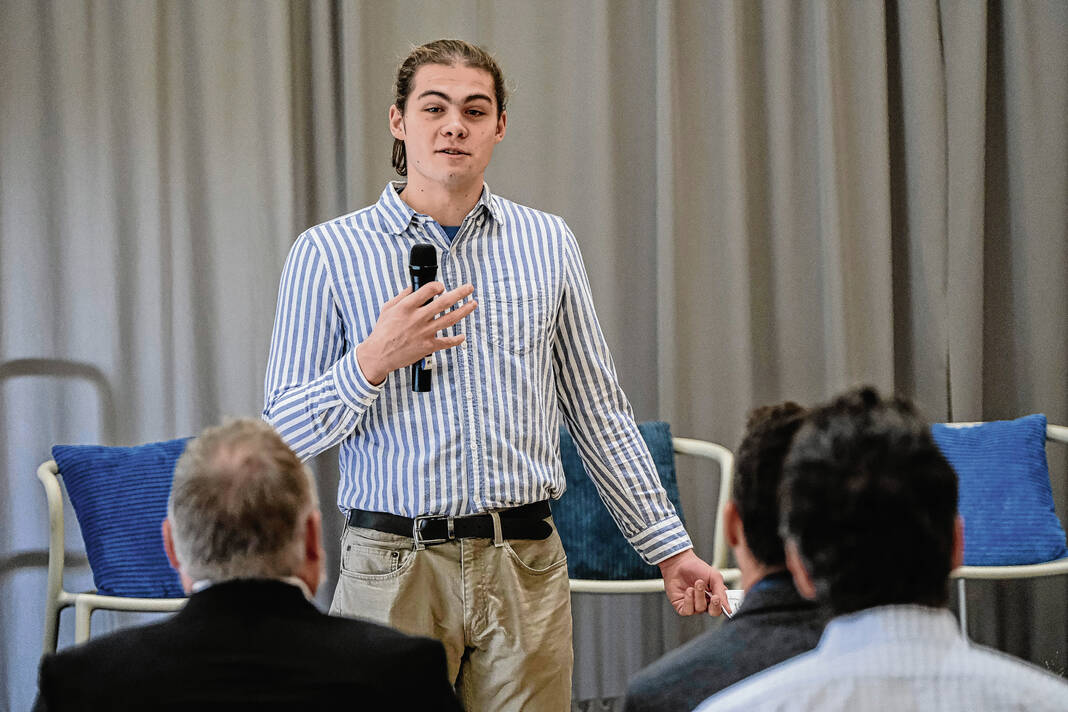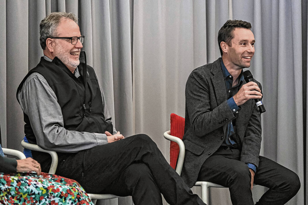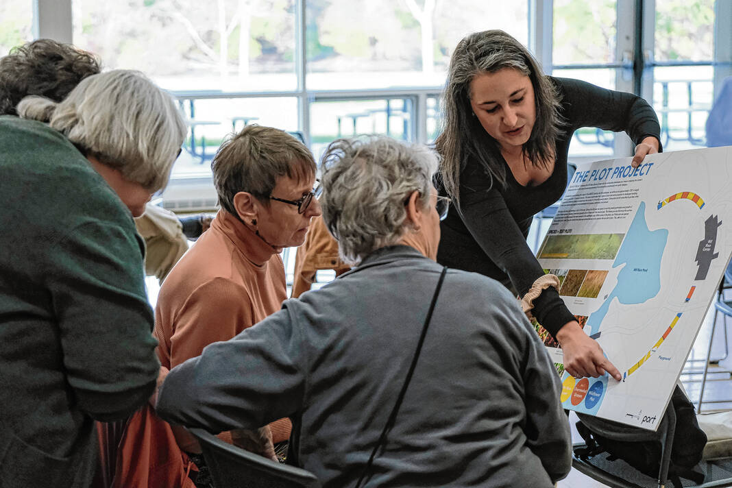 Christopher Marcinkoski and Andrew Moddrell, co-founders of PORT, worked on the installation which they said early on was an experiment using native plants. They spoke Thursday alongside Dan Mustard, executive director of Mill Race Center for 50-plus adults, and Thaisa Way. She serves as director of garden and landscape studies at Dumbarton Oaks Research Library and Collection and professor emerita, Landscape Architecture/College of Built Environments, University of Washington.