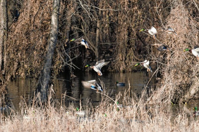 With 27 species of ducks cruising through Kansas air space, hunters never know what may head for their decoys next. Mallards, northern pintails, teal, and gadwall are the most common. Duck season is open across Kansas throughout November, except in the Southeast Zone, where duck season doesn’t open until Nov. 11. Hunters can harvest six ducks, but there are limits to different species, so make sure you understand the regulations. The northeast corner of the state, along the Missouri River, offers excellent duck hunting. Cheyenne Bottoms, near Great Bend, is a famous waterfowl destination.