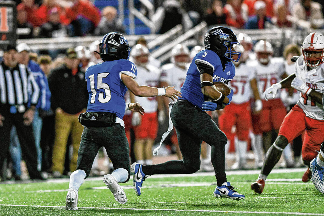 The Bull Dogs couldn’t do anything with it, however, and gave it back. Hennessy capped a drive with a 1-yard score. Cherry added a 1-yard sneak and then after converting a fourth-and-4 on its next series, Cherry hit Tristan Baxter for a 15-yard touchdown with 1:16 left in the first half.
