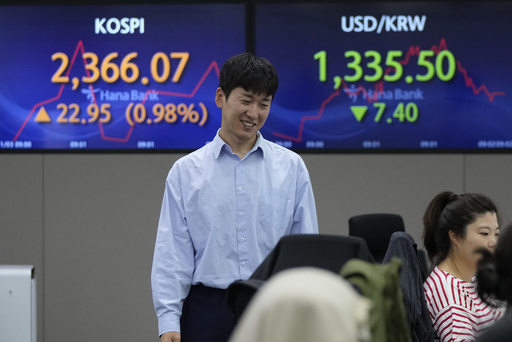 Australia’s S&P/ASX 200 gained 1.1% to 6,978.20. South Korea’s Kospi surged 1.1% to 2,368.34. India’s Sensex was 0.6% higher and Bangkok’s SET rose 0.8%.
