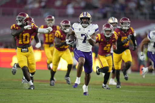 Johnson rushed for 256 yards and four touchdowns, Michael Penix Jr. passed for 256 yards and two scores and No. 5 Washington stayed perfect with a 52-42 victory over No. 24 USC.