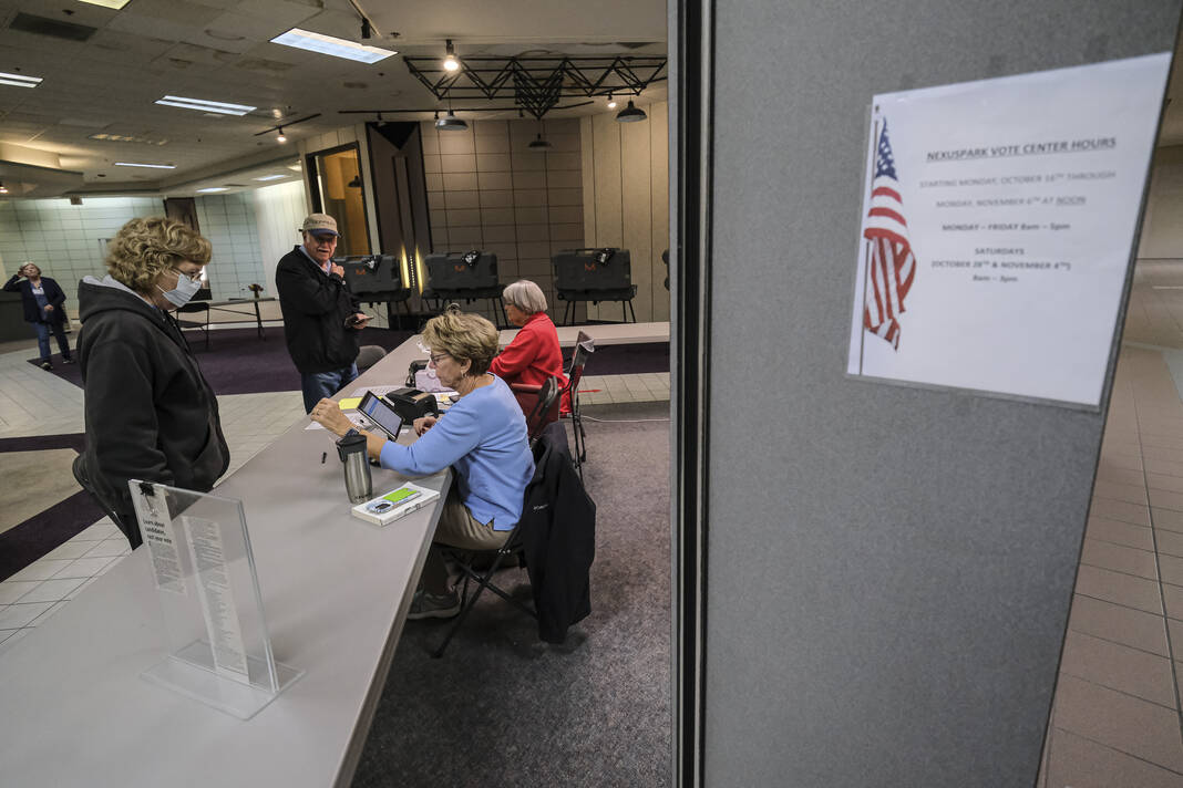 Mike Wolanin | The Republic Voters check in on the last day of early voting at NexusPark in Columbus, Ind., Monday, Nov. 6, 2023.