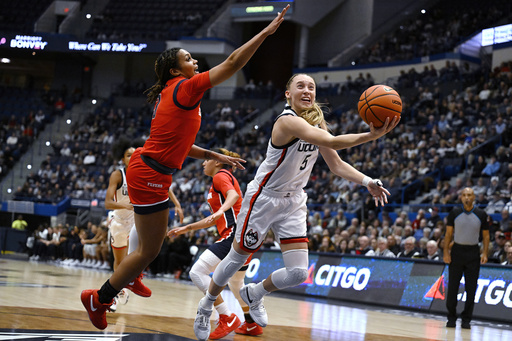 Aaliyah Edwards led the Huskies with 23 points and nine rebounds, one of six UConn players in double figures. Azzi Fudd had 13 points, Aubrey Griffin added 12, Qadence Samuels scored 11 and Nika Muhl and Caroline Ducharme each added 10.