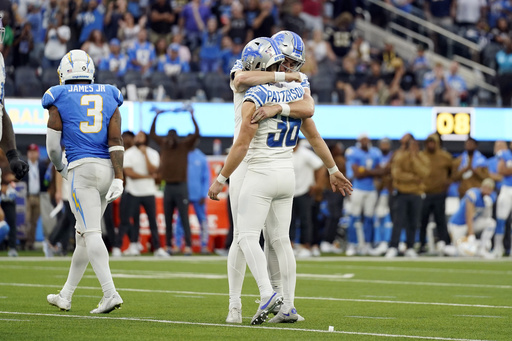 Jared Goff made the move pay off with a 6-yard completion to rookie tight end Sam LaPorta. Goff then kneeled down three times, Riley Patterson kicked a 41-yard field goal as time expired, and the Lions prevailed in a 41-38 shootout over the Chargers.