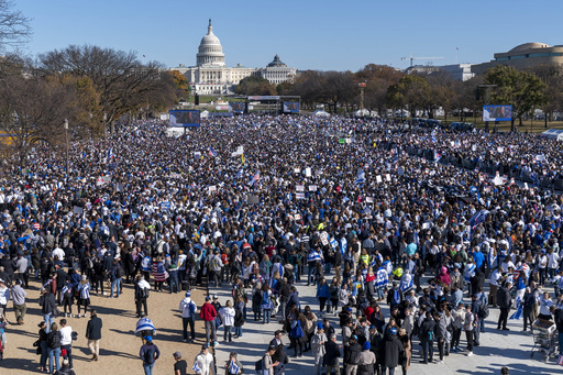 WASHINGTON (AP) — Supporters of Israel rallied by the tens of thousands on the National Mall under heavy security Tuesday, voicing solidarity in the fight against Hamas and crying “never again.”