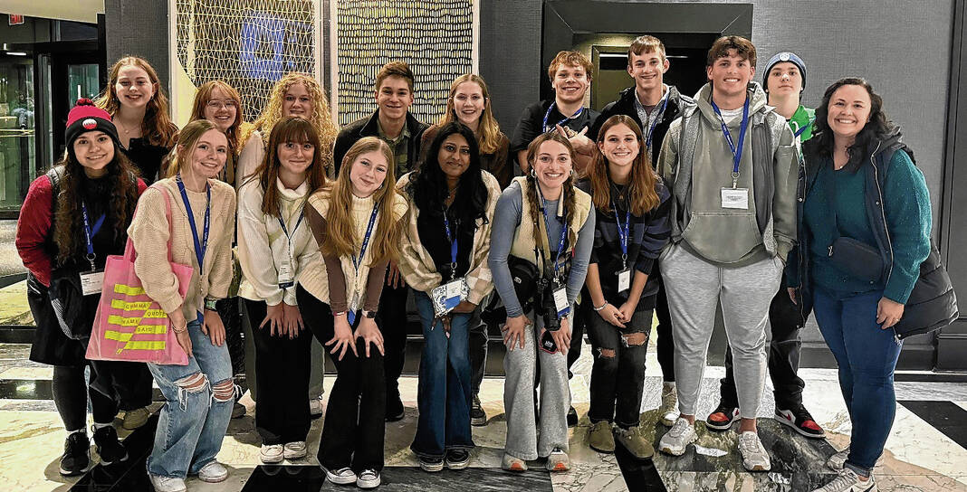 Columbus North High School Media students who attended the Journalism Education Association and National Scholastic Press Association’s National High School Journalism Convention included: back row, left-right, Lois Guest, Emma Warnock, Nicolas Bowers, Claire Davis, Ryan Beck, Leo Iorio, Jaden Zolton and front row, left-right: Regina Holguin, Lydia Weed, Brynn Stewart, Avery Tays, Deshna Venkatachalam, Sylvia Sasse, Greta Schuetz, Hudson Elwood and Rachel McCarver.
