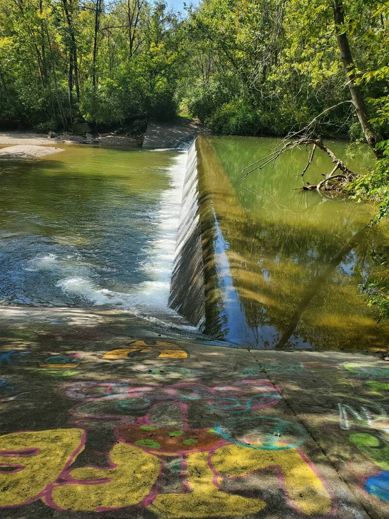 According to utilities engineer Ashley Getz, the dam in question — also known as a weir — crosses Haw Creek just south of Rocky Ford Road. This is not to be confused with the deteriorating low-head dam in the East Fork White River downtown.